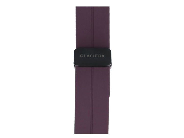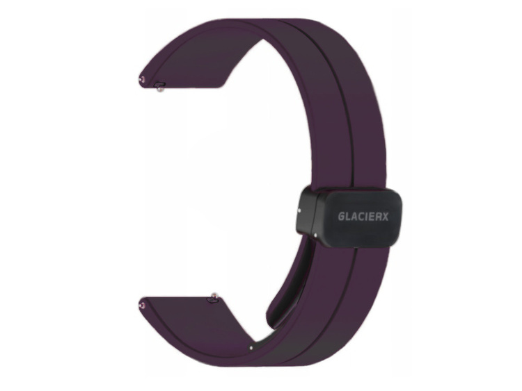 - Silikonarmband für die Smartwatch GlacierX in dunkler, lila Farbe. Magnetischer, faltbarer Verschluss bildet mit der Uhr eine durchgehende Schleife, die sie vor dem versehentlichen Abrutschen vom Handgelenk schützt. Produkt neu, Breite 22 mm.