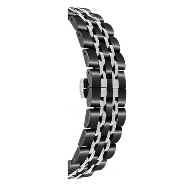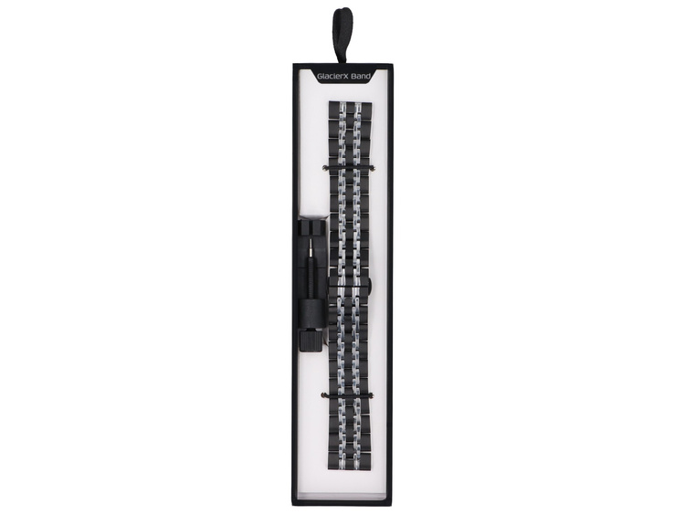 - Stahlarmband für die Smartwatch GlacierX in Silber-Schwarz (Handmalerei). Mit einer Schmetterlingsschnalle, die die Uhr vor versehentlichem Abrutschen schützt. Neues Produkt, Breite 22 mm + Werkzeug zur Längenanpassung.
