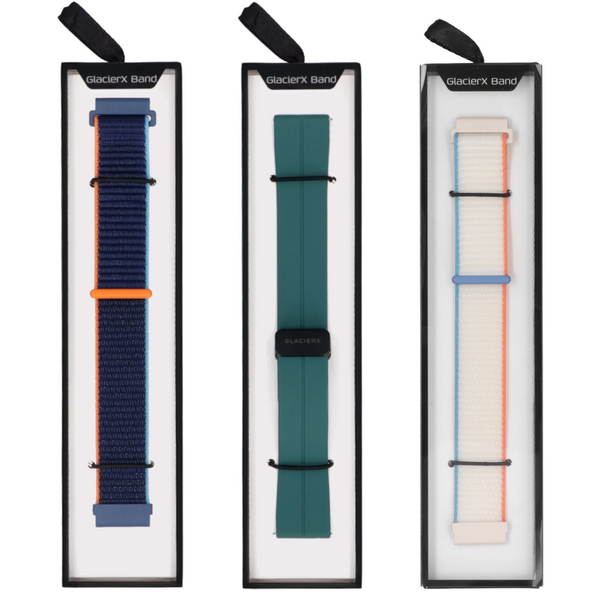 Set von Armbändern für Smartwatch GlacierX Grip Strap Nylon Tropical Cream + Silikon-Magnetverschluss Forest Green + Grip Strap Nylon Ocean Blue 22mm
