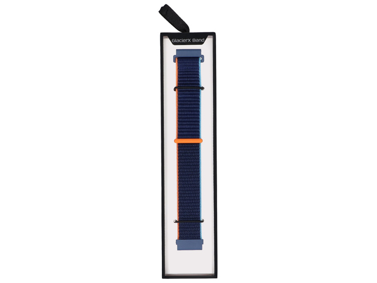 - Set aus drei GlacierX-Armbändern mit teleskopischer Befestigung. Nylon in gebrochenem Weiß mit kontrastierenden Kanten, Nylon in Marineblau und Silikon in Dunkelgrün mit magnetischer Schmetterlingsschnalle. Produkte neu, Breite 22 mm.