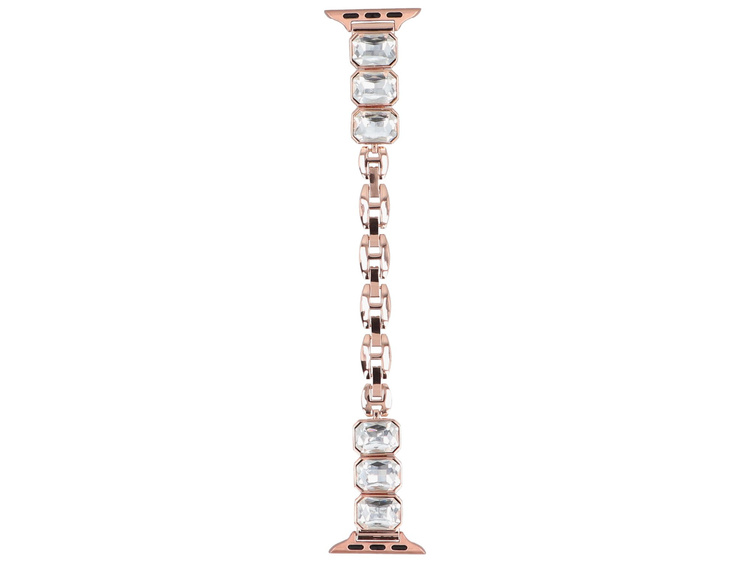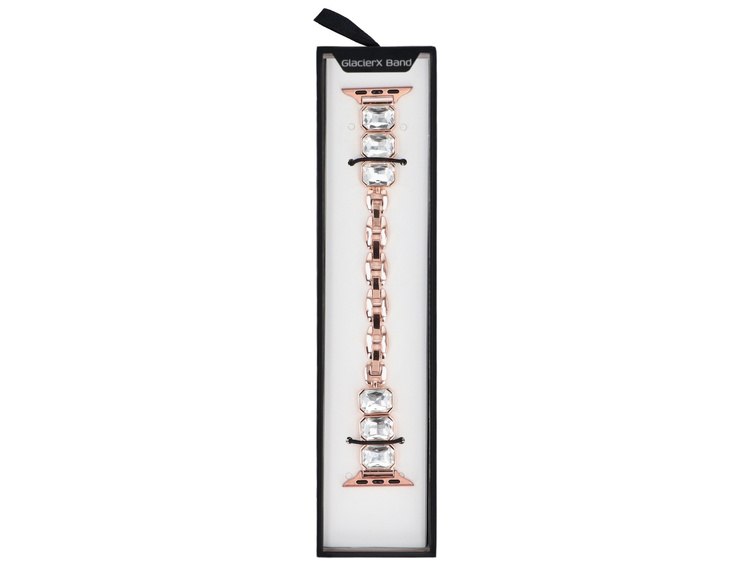 - Die Gliederarmband GlacierX ist für die Apple Watch 38/40/41mm geeignet. Farbe roségold, verziert mit Zirkonia. Die Länge ist durch vier abnehmbare Glieder verstellbar. Produkt neu, verpackt in der Originalverpackung.