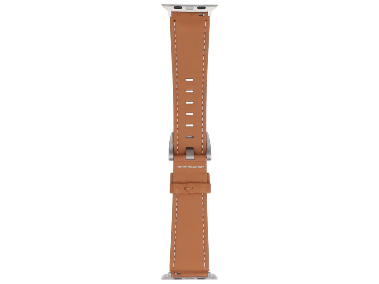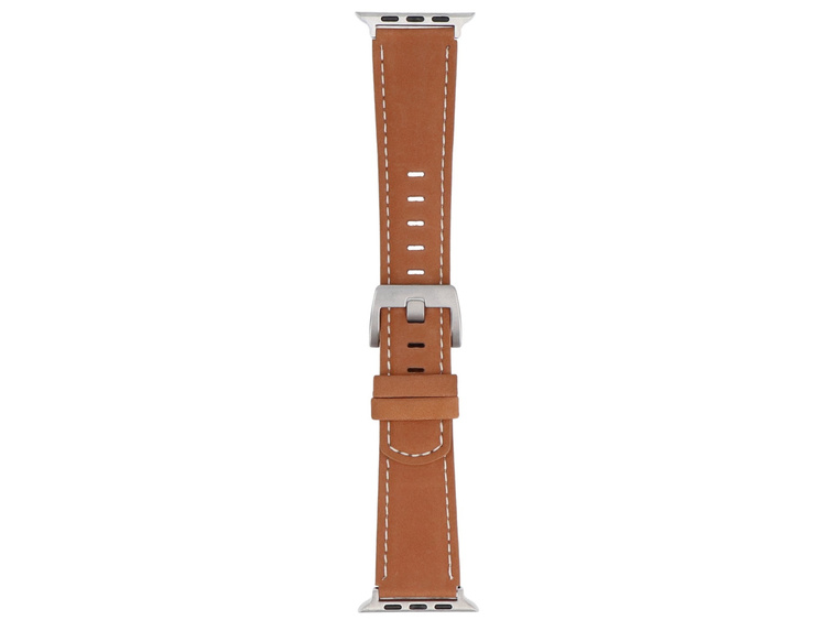 - Der GlacierX-Armband aus echtem Leder mit leicht samtiger Struktur, geeignet für die Apple Watch 42/44/45/49mm. Farbe braun mit hellen Nähten. Mit einer klassischen Schnalle verschlossen.