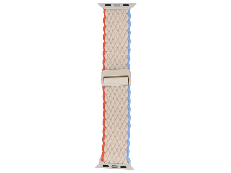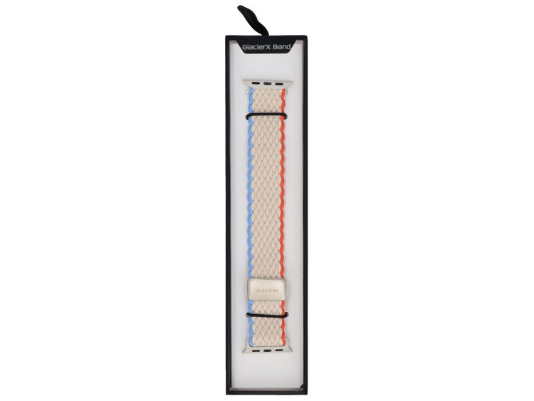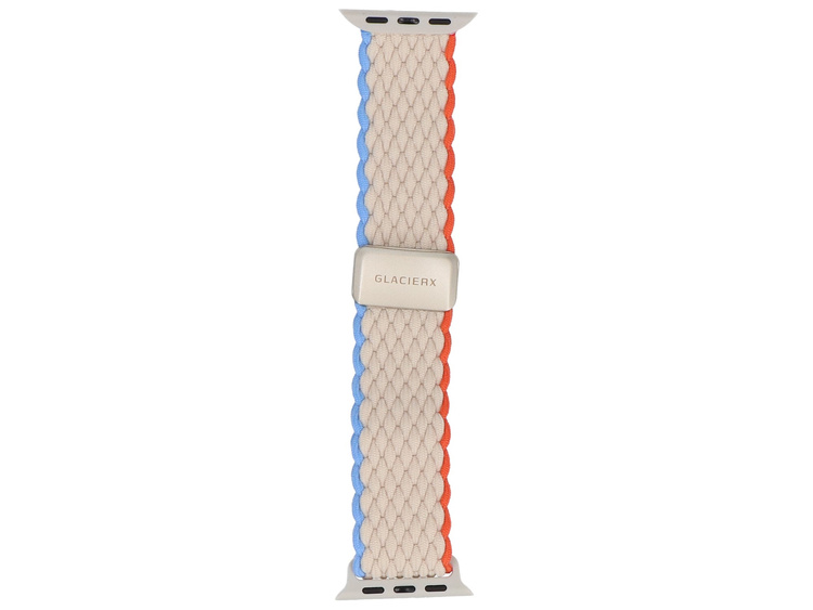 - Geflochtener Gürtel GlacierX, speziell für Apple Watch 38/40/41mm. Dank des magnetischen Verschlusses und der hohen Flexibilität des Gürtels ist eine präzise Anpassung an das Handgelenk möglich. Produkt neu, Farbe creme mit orangefarbener und blauer Kante