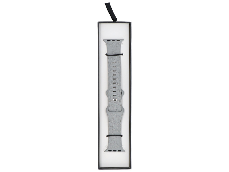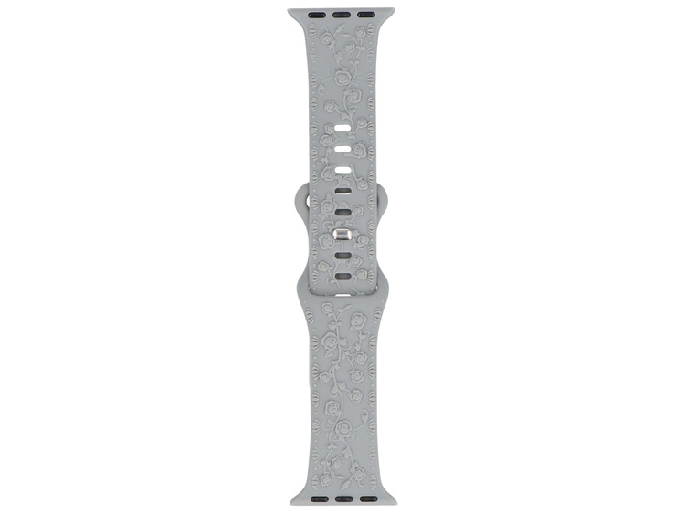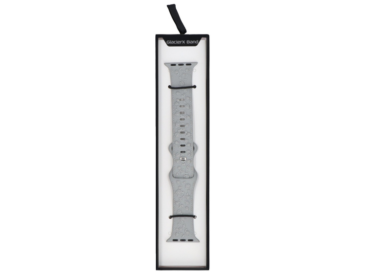 - Silikonarmband GlacierX, geeignet für Apple Watch 38/40/41mm, in der Farbe Grau mit dekorativer Textur. Steckverschluss mit Lasche. Produkt neu.