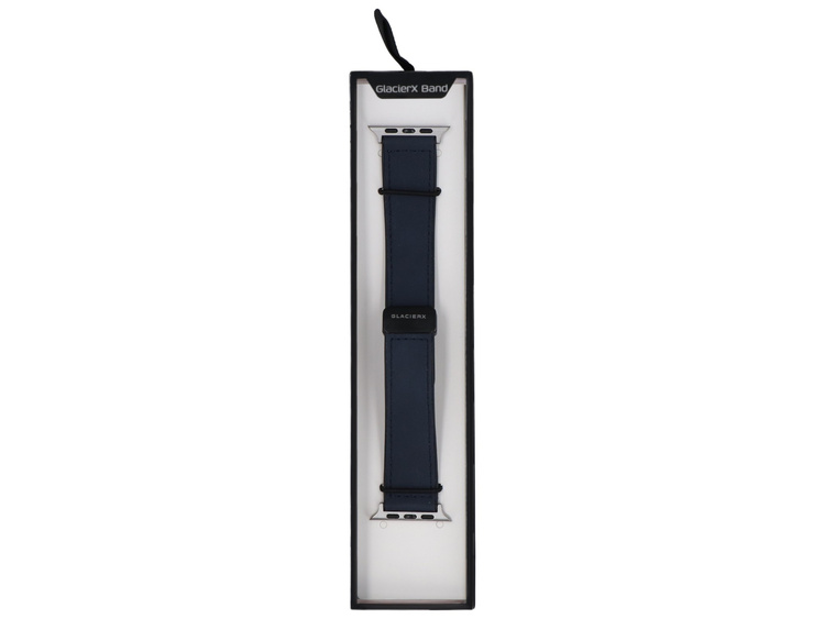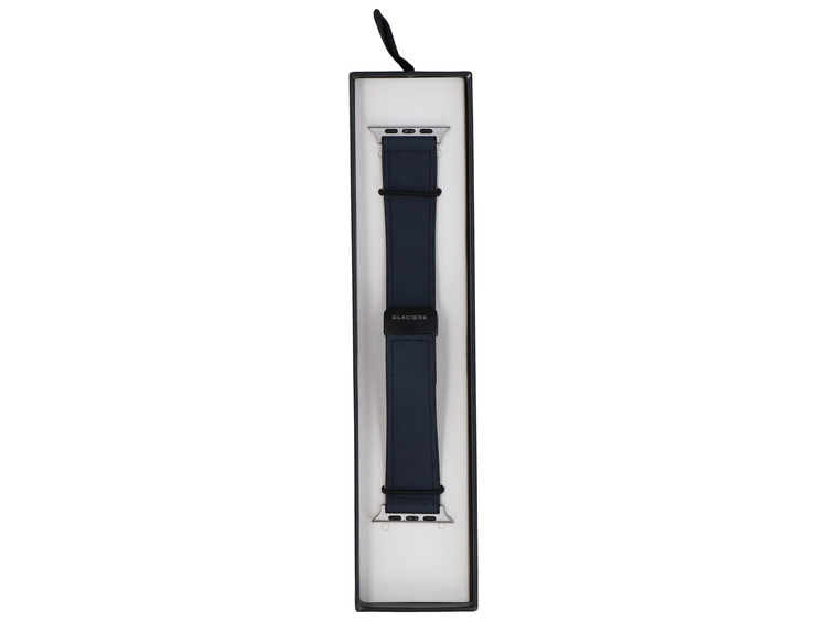 - Lederarmband GlacierX, speziell für die Apple Watch 42/44/45/49mm. Mit einer magnetischen, klappbaren Schnalle versehen, bildet es mit der Uhr eine durchgehende Schleife und schützt sie vor versehentlichem Abrutschen. Neues Produkt, Farbe Mitternachtsblau