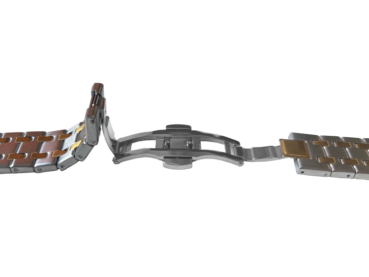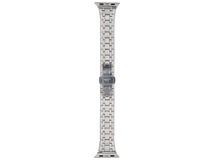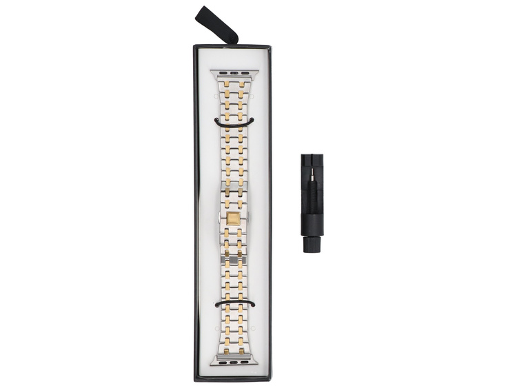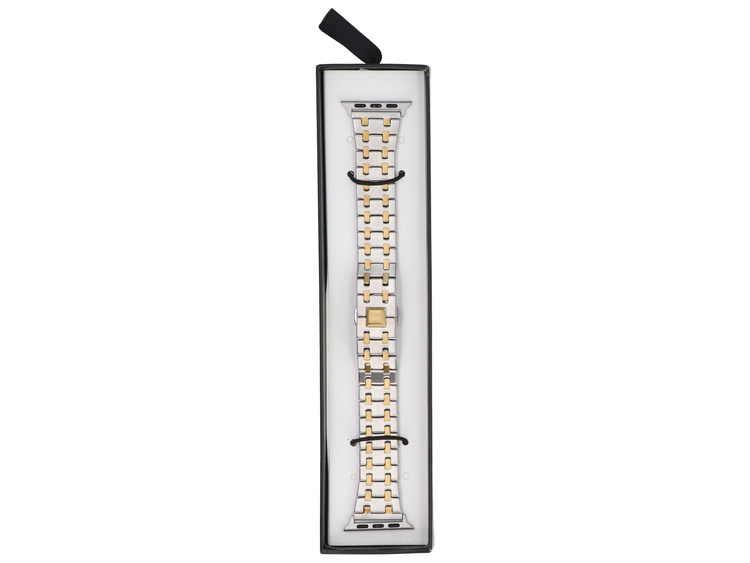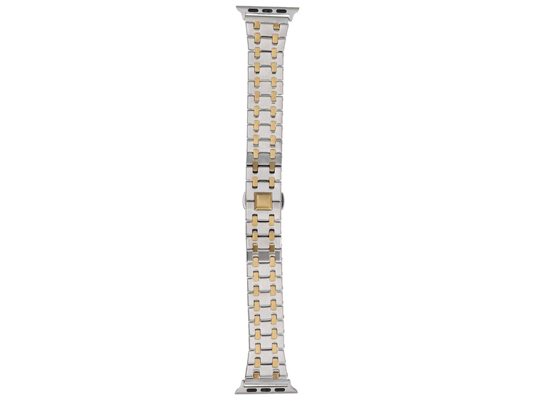 - Armband GlacierX für Apple Watch 38/40/41mm. Silberfarbe mit goldenen Einsätzen und dekorativem Schmetterlingsverschluss. Produkt neu.