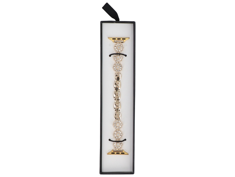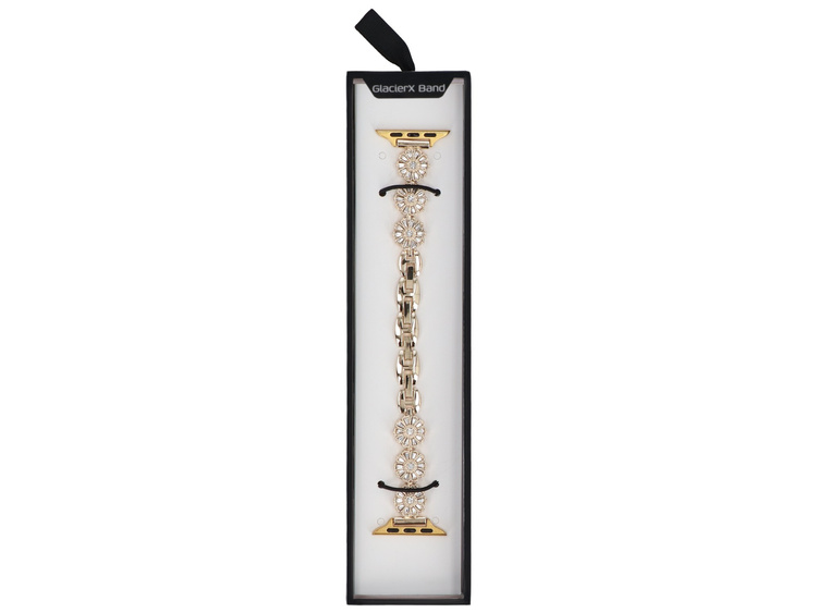 - Die Gliederarmband GlacierX ist für die Apple Watch 38/40/41mm vorgesehen. Farbe gold, mit Zirkoniasteinen verziert. Die Länge ist durch abnehmbare Glieder verstellbar. Das Produkt ist neu und in der Originalverpackung.