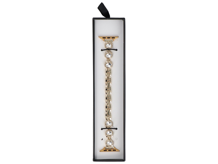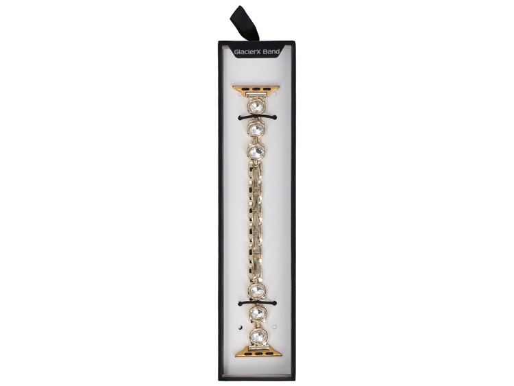 - Die Kettenarmband GlacierX ist für die Apple Watch 38/40/41mm bestimmt. Farbe gold, mit Zirkonia verziert. Länge verstellbar durch abnehmbare Glieder. Produkt neu, in der Originalverpackung.