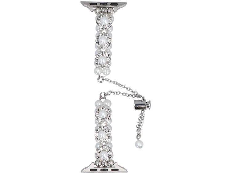 Neue Armbanduhr GlacierX Slider Clasp Blossom Charm Bracelet Pearl Gleam für Apple Watch 38/40/41mm Silber-perlmutt