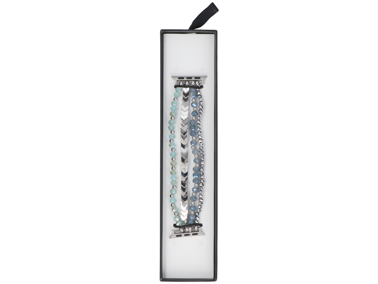 Neue Armbanduhr GlacierX Multi Strand Beaded Bracelet Crystal Blue für Apple Watch 38/40/41mm Silber-blau