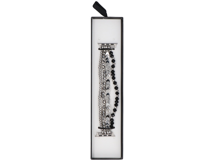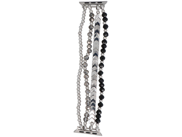 Neue Armbanduhr GlacierX Multi Strand Beaded Bracelet Onyx Shine für Apple Watch 38/40/41mm Silber-Schwarz