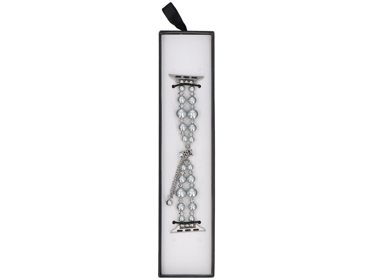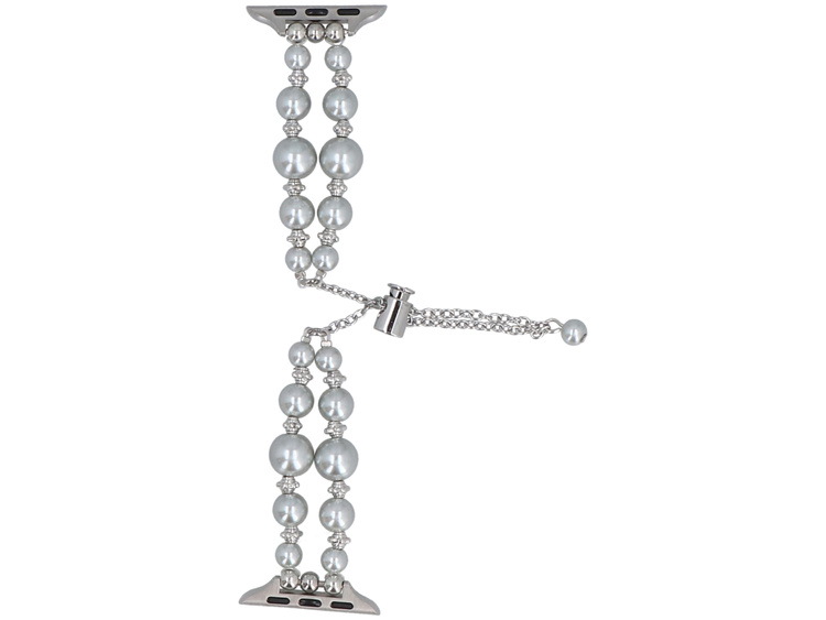 Neue Armbanduhr GlacierX Slider Clasp Double Chain Pearl Bracelet Silver Gleam für Apple Watch 38/40/41mm Silber