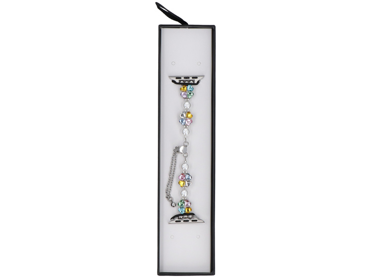 Neue Armbanduhr GlacierX Slider Clasp Clover Motif Bracelet Crystal Candy für Apple Watch 38/40/41mm Silberfarben