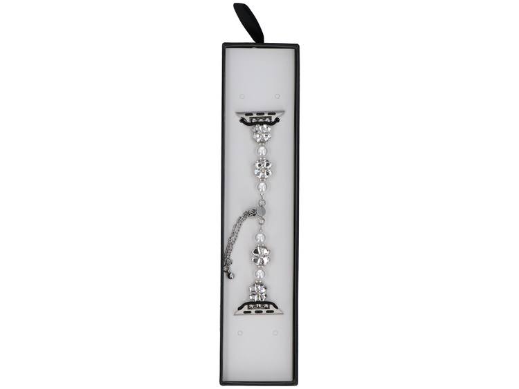 Neue Armbanduhr GlacierX Slider Clasp Clover Motif Bracelet Crystal Pearl für Apple Watch 38/40/41mm Silber