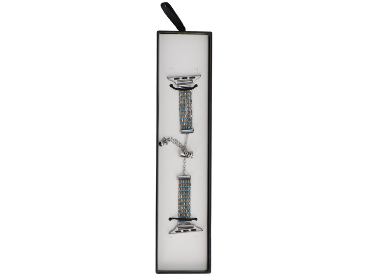 - Die Schmuckarmband GlacierX ist für die Apple Watch 38/40/41mm vorgesehen. Es wird mit einem Slider-Verschluss (Stopper) geschlossen.