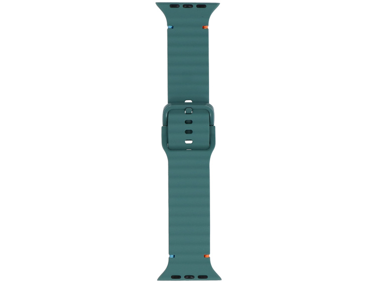 - Silikonarmband GlacierX, speziell für Apple Watch 42/44/45/49mm mit einer klassischen Schnalle in der Farbe des Armbands. Türkisgrün mit einer auffälligen gerippten Textur.