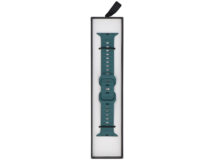 - Silikonarmband GlacierX, speziell für die Apple Watch 42/44/45/49 mm mit einer Steckschließe und einem Stift. Grüner gestreifter mit dekorativer Textur.