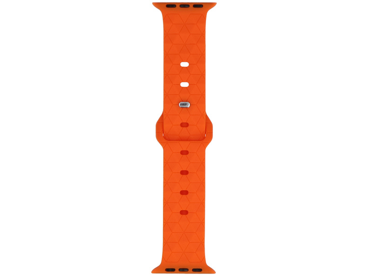 - Silikonarmband GlacierX, speziell für die Apple Watch 42/44/45/49mm, mit einem Steckverschluss mit Stift. Neonorange mit subtilen geometrischen Mustern.