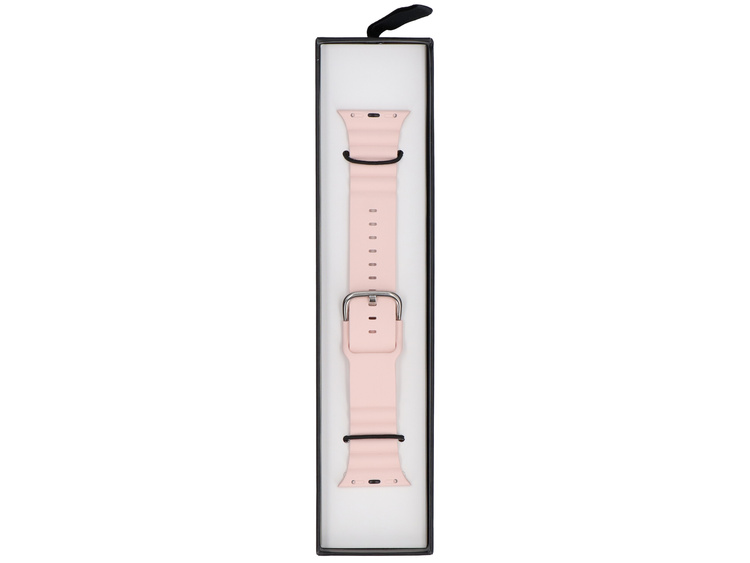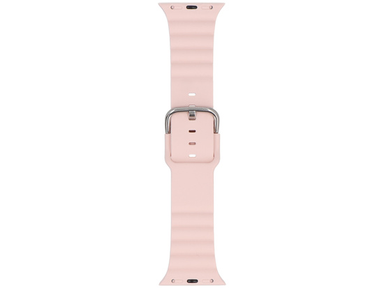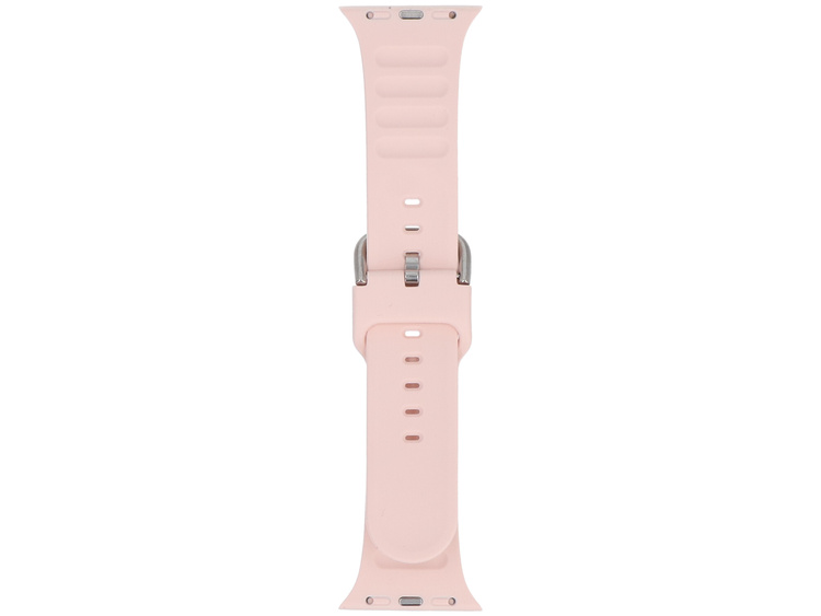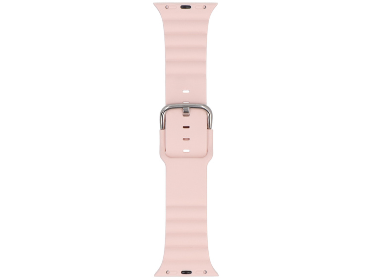 - Silikonarmband GlacierX, der für die Apple Watch 38/40/41mm mit einer klassischen silbernen Schnalle geeignet ist. Rosa mit ausgeprägter gestreifter Textur.