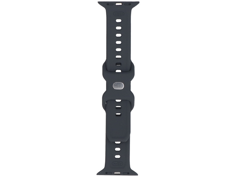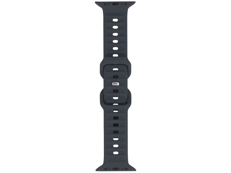 - Silikonarmband GlacierX, der für die Apple Watch 42/44/45/49mm mit einer Steckschließe mit Stift geeignet ist. Dunkelgrau gestreift mit dekorativer Textur.