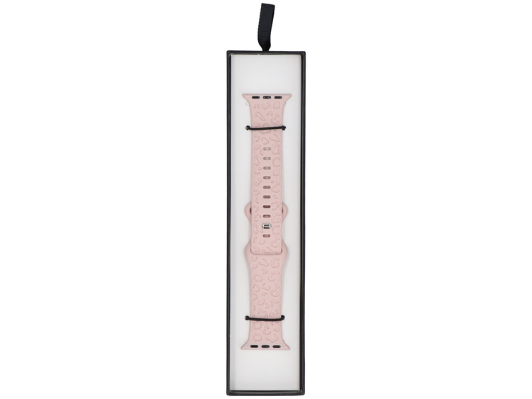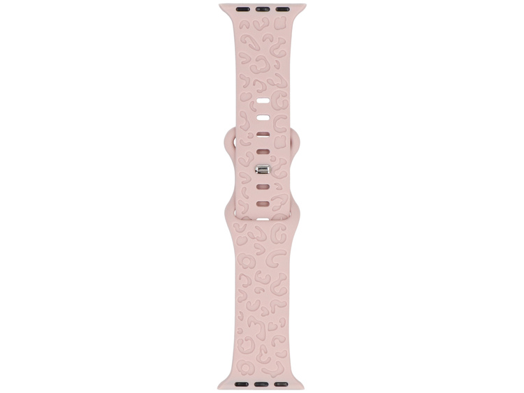 - Silikonarmband GlacierX, speziell für die Apple Watch 38/40/41mm, mit einer Einschnallvorrichtung mit Stift. Rosa mit subtilen Tiermustern.
