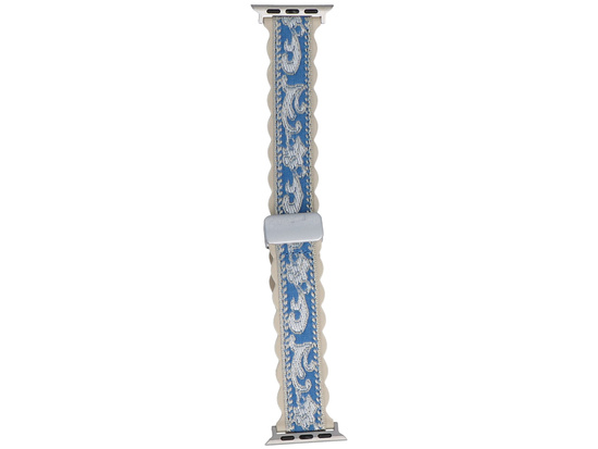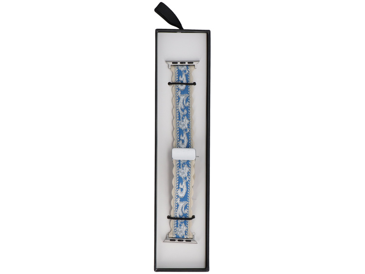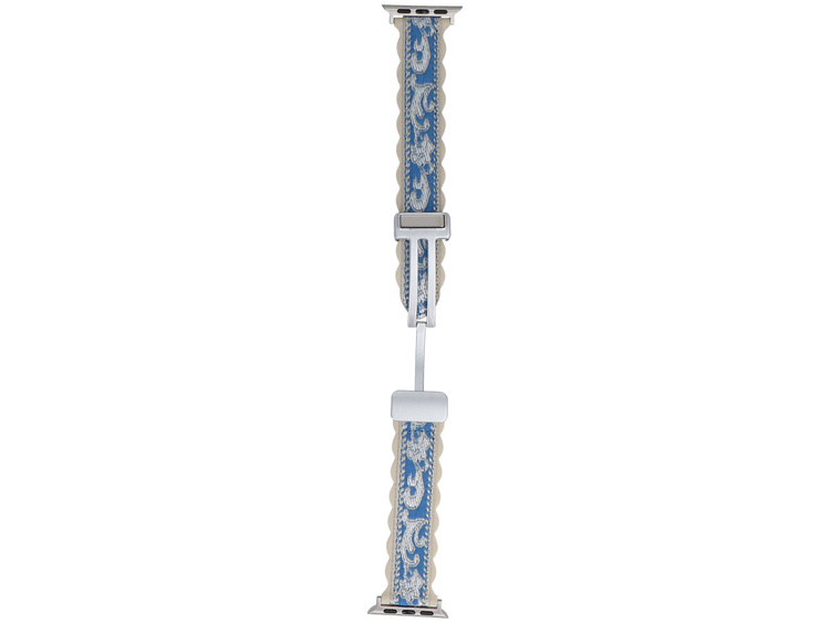 - Leder-Textilarmband GlacierX, speziell für die Apple Watch 38/40/41mm. Zweilagig, mit einem dekorativen, gestickten Muster in Blau und Weiß.