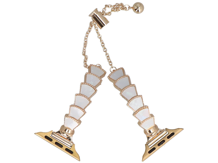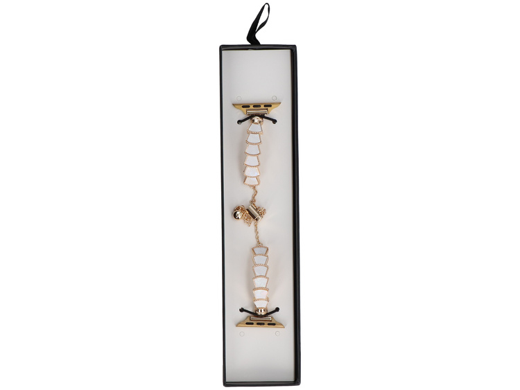 - GlacierX-Armband, speziell für Apple Watch 38/40/41mm, im Stil eines Armreifs. Schiebeschnalle, hergestellt aus Gliedern mit Perlmuttfüllung, gold-weiße Farbe.