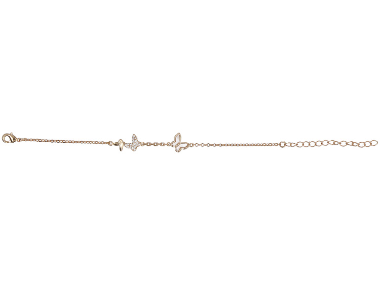 - Romantisches - klassisches Armband mit einer subtilen Komposition aus drei Schmetterlingen. Glänzende Zirkonia, die einen der Anhänger schmücken, verleihen dem Ganzen einen besonderen Glanz. Dieses elegante Accessoire betont die Leichtigkeit jedes Looks.