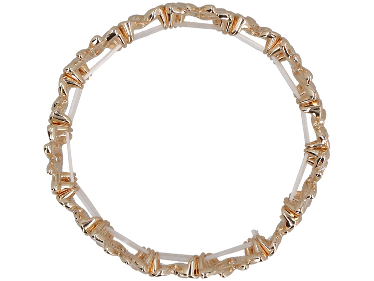 - Elastisches Armband in Gold, bestehend aus Segmenten in Schmetterlingsform, mit weißer Füllung im Emaille-Stil. Es ist ein charmantes und vielseitiges Accessoire, das jeder Stilrichtung Leichtigkeit und einen farbenfrohen Akzent verleiht.