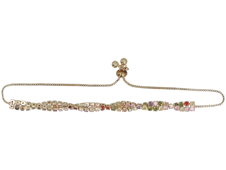- Freude - eine mit positiver Energie erfüllte, zarte Armbänder in goldener Farbe, verziert mit bunten Zirkonia. Der verstellbare, ziehbare Slider-Verschluss sorgt für eine perfekte Anpassung am Handgelenk.