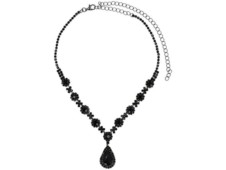 - Gothik ist ein ausdrucksvolles Schmuckset, das für Liebhaberinnen starker Akzente entworfen wurde. Die Halskette und die Ohrstecker, verziert mit schwarzen Zirkonias, enden mit einem großen, tropfenförmigen Stein. Ein Set, das der Styling einen geheimnisv