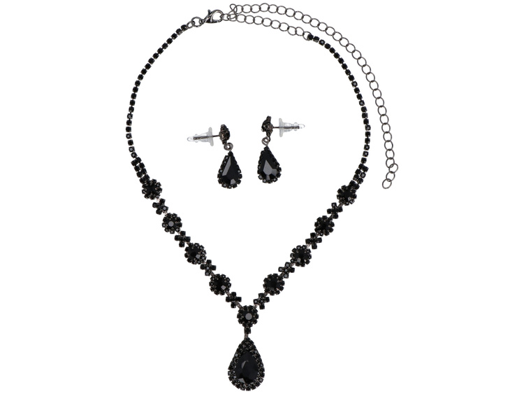 Schmuckset Gotik Schwarz Halskette + Ohrringe